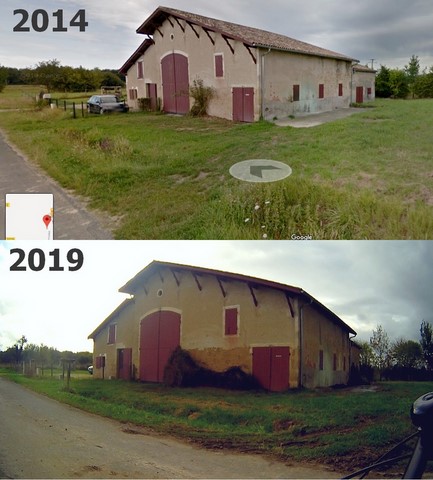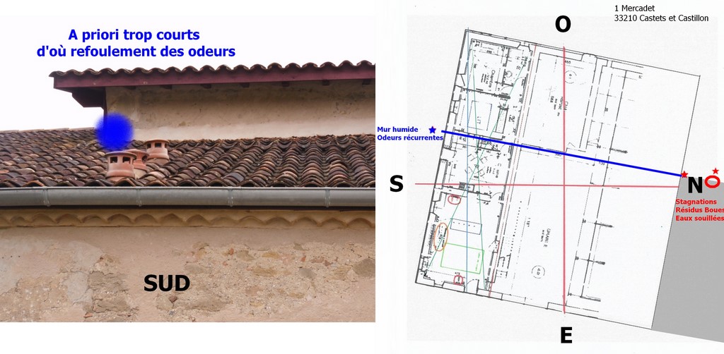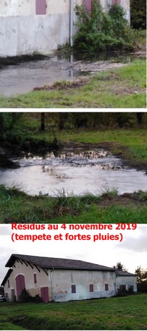 Je pense que cette photo est une synthése representative du climat malsain voir insalubre (humidité, macération, odeurs acides, et piquantes, avec emanations nocives. Il suffit aussi de voir la dégradation du mur par rapport à 2014, avec des traces noires en bas et en haut sous la gouttière.