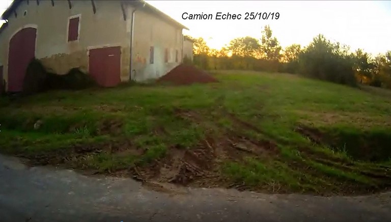 Dégradations depuis 2 ou 3 ans. Preuve aussi que le camion n'avait pas réussi à retirer le Marc la veille d'un week end. J'en ai donc une fois de plus payé les conséquences. Cela alors qu'il m'avait toujours été maintenu que c'est le seul endroit accessible au camion! Il est tombé dans le fossé il y a environ 4 ou 5 an et il a failli y retomber le vendredi 25 octobre