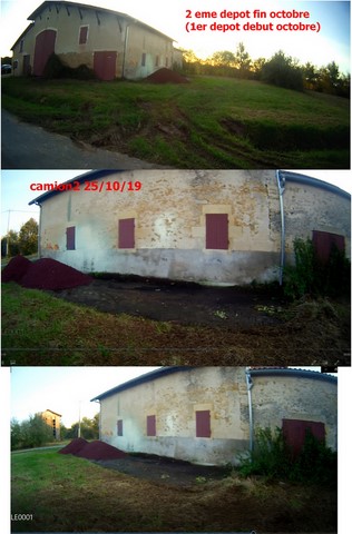 Il y a vraiment d'autres possibilités de déposer le marc ailleurs que contre mon logement. Là, ce sont des vignes sur la departementale dont l'accessibilité est possible, loin des habitations. Les 2 chauffeurs m'ont dit qu'une dalle en béton n'était pas obligatoire, mais juste plus facile pour la pelleteuse.